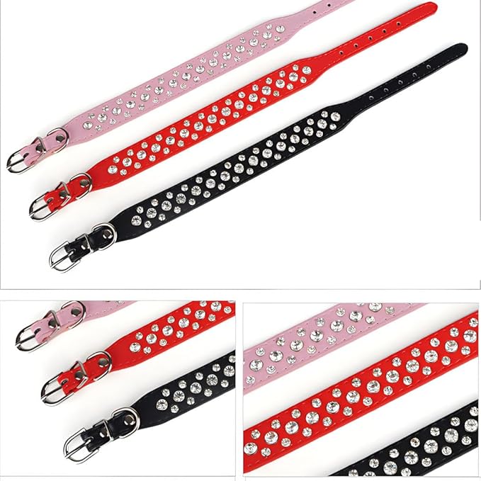 - ★【Nice】The dog collars for small dogs have 3-rows bling crystal diamond, makes your dog or cat sparkle in the light. It is at Christmas, weddings, holidays, parties, and great for pet cosplay outfits, bring fun and eye-catching effect to your lovely dog and cat.