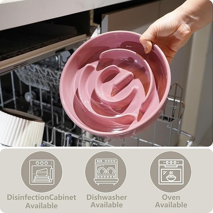 - 【Safe Sturdy Ceramic Material】Enjoy food safely and healthily — Plastic dog bowls are often bitten by dogs, resulting in the plastic being ingested by dogs, which is harmful to dogs' health. We prioritize your pet's health by using high-quality ceramic for our slow feeder dog bowls.