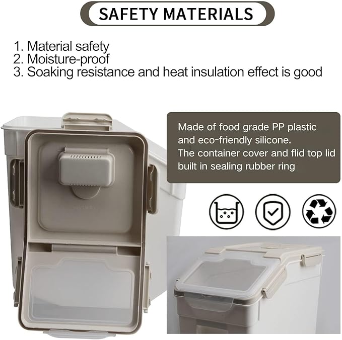 - Large Capacity: Each food storage container measure about 13.77 x 7.87 x 13.77inch, 400oz / 15L capacity, can store about 25 pound rice, and 16-18 pound dry pet food of dog or cat ( depending on the size of what you’re putting in ). Meanwhile, this storage bin is suitable for storing pasta, soybean, sugar, grain, flour, corn, other dry food, etc.