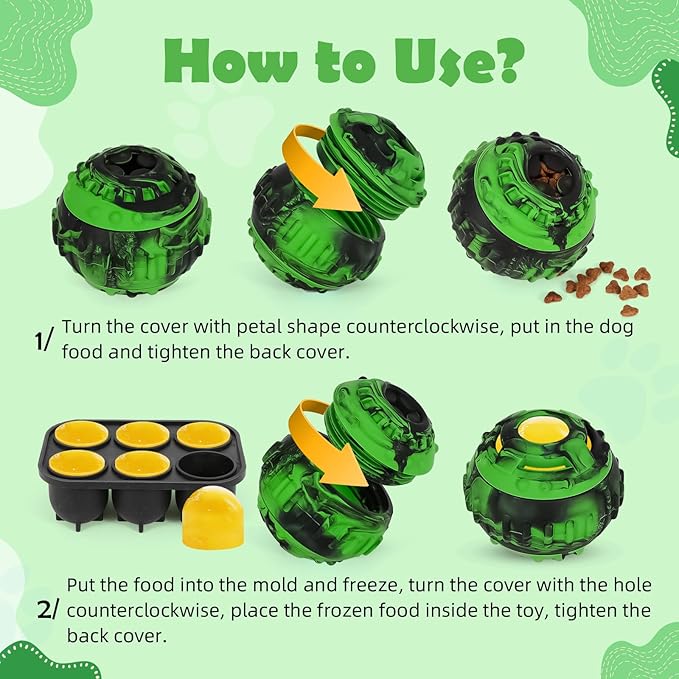 - 【DIY-Make Homemade Treat】Equipped with silicone ice tray & cookbook, phenomenal for freezing, easy to fill and easy to pop the frozen treats out when you use the ice tray. You can freeze homemade dog treats for the toy using your dog's favorite foods, like wet food, broth yogurt, peanut butter dog treats, and more! Time to unleash your creativity! It's safe and healthy to make DIY delicious dog goodies with natural ingredients from your kitchen.