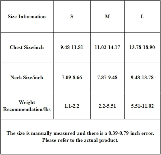 - Size:Suitable for small, medium and large rabbits, also suitable for ferret, kitten, mini dogs and other small animals. (Please measure the pet's neck & chest circumference before purchasing to choose the appropriate size to buy)