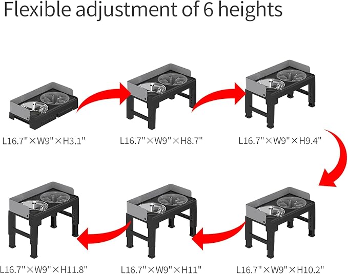 - 6 Adjustable Heights for All Life Stagesโ: From 3.1โ to 11.8โ, our feeder stand fits every pup: ๐ 3.1โ for tiny adults (Chihuahuas) & 2โ4-month-old puppies; ๐ 8.7โ for small adults (Pomeranians) & 3โ6-month-old medium pups (Frenchies); ๐ 9.4โ for medium โsmall buildsโ (French Bulldogs) & 4โ8-month-old teenage medium breeds (Shibas); ๐ 10.2โ for full-grown medium breeds (Beagles) & 6โ10-month-old adolescent large breeds (Goldens); ๐ 11โ for larger medium adults (Border Collies) & 8โ12-month-old young large adults (Huskies); ๐ 11.8โ for full-grown large breeds (Labs) & 6โ12-month-old teenage giants (Great Danes). Grow with your fur dog!