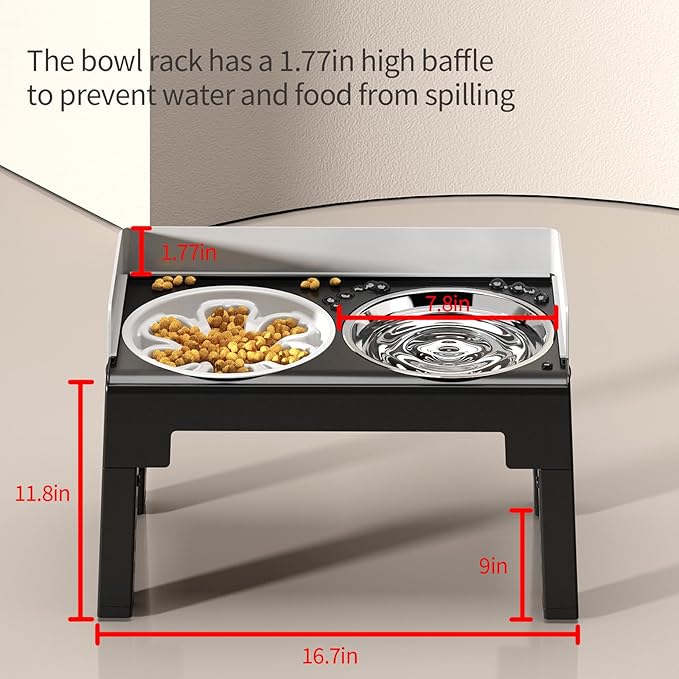 - 1.77โ High Spill-Proof Baffle | The 1.77-inch raised back guard helps contain food and water splatters, protecting walls/floors from stains โ perfect for messy eaters, even enthusiastic large breeds!