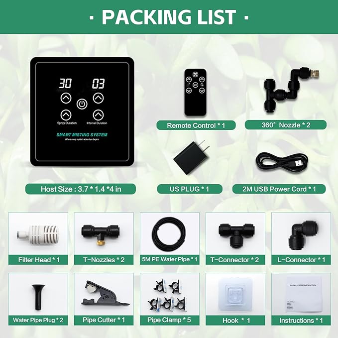 - SCENARIO APPLICATION - Reptile humidifier misting system is mainly used in terrariums and rainforest boxs to keep reptiles such as Chameleons, Snake, Frog, Turtle, Lizard... In addition, it can also be used for plant watering, plant beautification in gardens, greenhouses and other scenes, fan cooling, etc. Whether in the garden or in a terrarium, is a great choice for Spraying/Humidifying/Cooling/Cleaning.