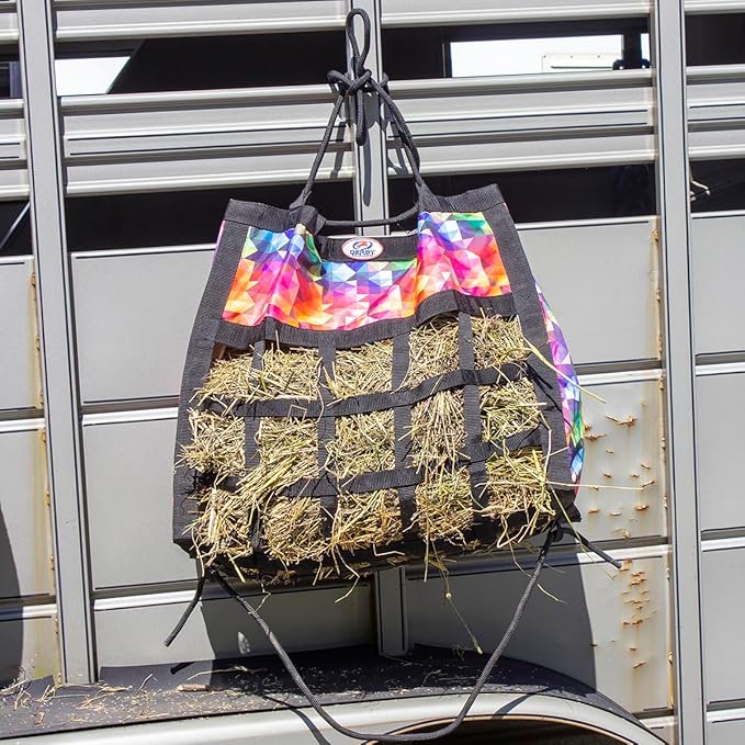 - HOLDS 2-3 FLAKES OF HAY - this 24.5"x9.5"x21.5” hay bag with 3.5" square openings holds approx. 2-3 flakes of Timothy, Orchard, Alfalfa, or any other type of hay. Our hay bags were designed to minimize frustration and can be stuffed in seconds.
