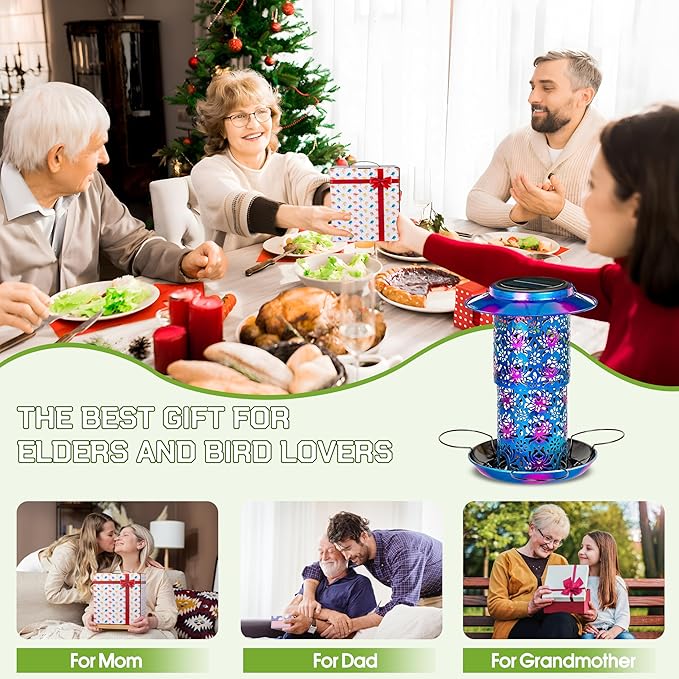 - 【Unique Gift】A Wonderful Garden Present - The solar bird feeder comes in a beautifully designed box. An ideal gift for Mom/Grandma/Wife/Daughter/Sister/Aunt/Grandma, girlfriend/boyfriend, wife's wedding anniversary, child's birthday, mother's birthday, or Mother's Day, Father's Day, Thanksgiving Day, Valentine's Day, and Christmas.