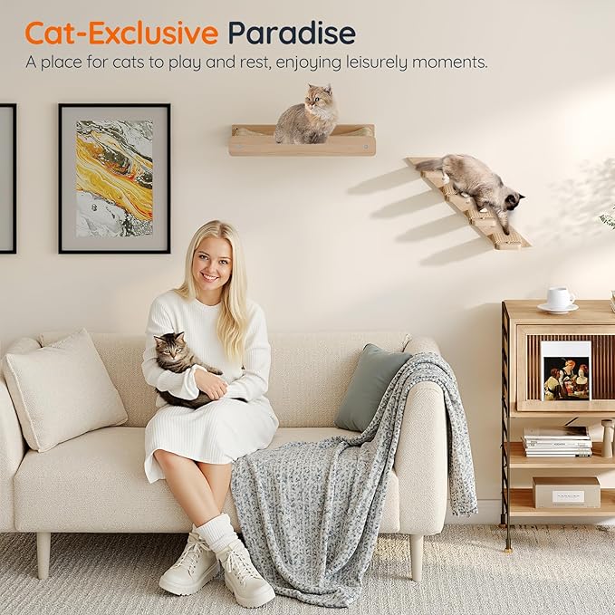 - Easy Assembly: Our cat wall shelf, with its simple structure and including two types of expansion screws plus a level, ensures precise placement and quick installation. For a solid oak construction, a power drill is recommended for a secure setup