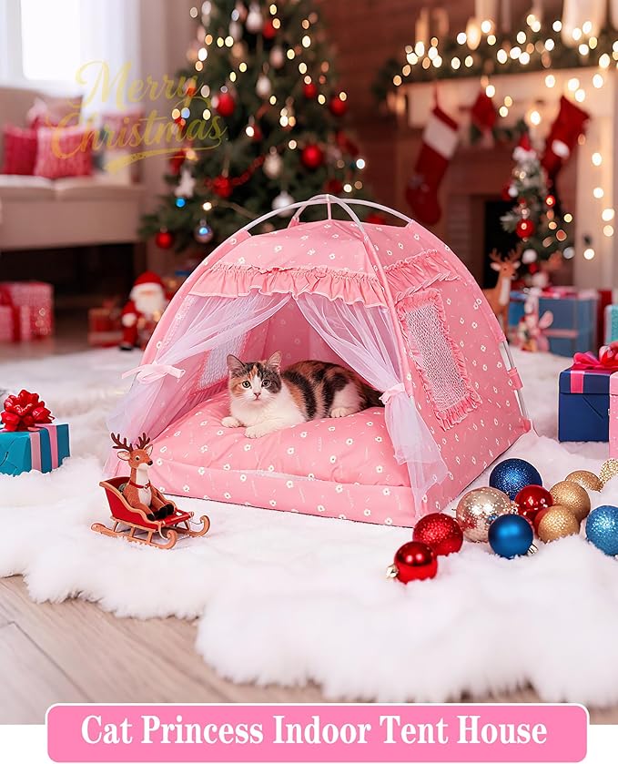 - 【Princess Cat tent】Experience a Cute tent with a beautiful flower canopy design Mesh Window,Refreshing and breathable.