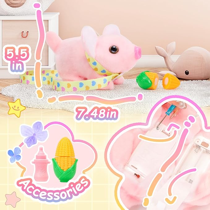 - More Than Just A Toy Pig: This fun toy pig can effectively soothe children's emotions, and help improve the overall cognitive skills of toddlers. It allows kids to pretend that they are the owners of a pet, interact with it and keep each other company