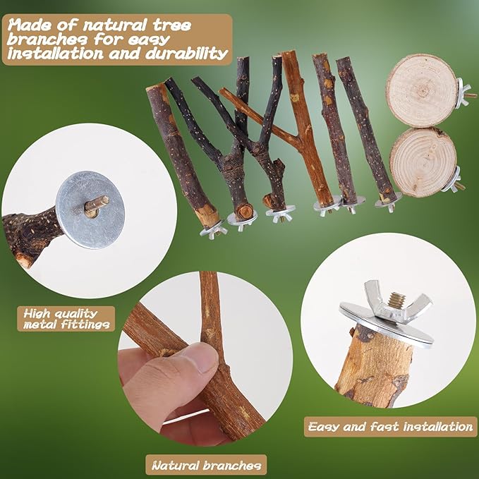 - Material: Our natural bird perch is made of high-quality natural wood, with no paint, natural and environmentally friendly, without any harm, in line with the living habits of birds.