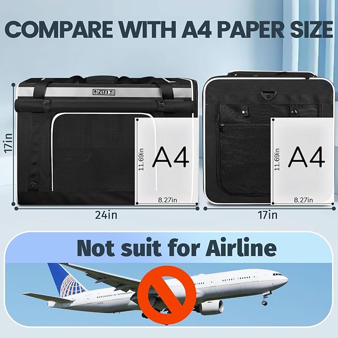 - 【EXTRA LARGE ROOM】The extra large cat carrier size:24"x17"x17", Suitable for pets up to 55 pounds. perfect for a large cat or several small cats. The large pet carrier can be folded for easy storage with extra pockets for storing a travel litter box, a bowl and a treat bag. Great for car trips, moving, going to the vet.