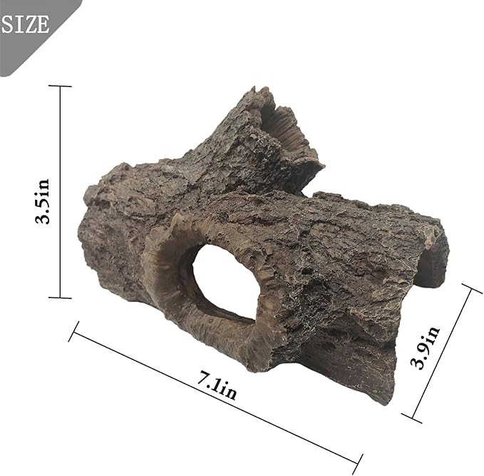- 【Multi-Purpose Use】In addition to serving as a habitat decoration and hideout for reptiles and amphibians, this simulated log can also be used for aquarium and fish tank. With its weight, betta fish hideout sits stably on the bottom of fish tank, adding a lifelike and vivid touch. Your fish are also free to move through the aquarium log, which provides them with a safe hide spot to reduce stress.