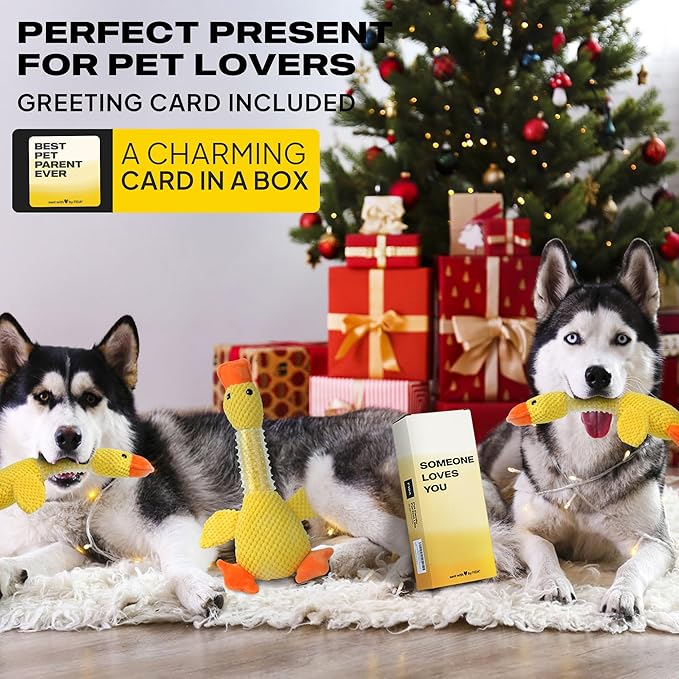 - Greeting Card Included- Our squeaky dog toys for aggressive chewers with a complimentary greeting card. Whether it is a dog birthday toy or any holiday toy like Thanksgiving, Christmas, Halloween, etc., our indestructible dog stuffed animal toys are a perfect choice! Any issues with the yellow duck dog chew toy, contact with us, please contact us, we will always provide the best solution for you