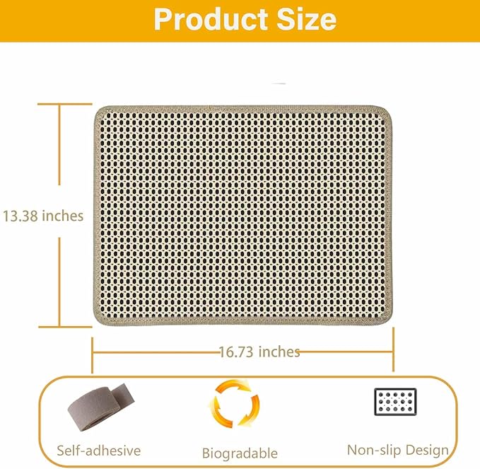 - PROTECT CAT PAWS: The outermost layer of the cat scratching mat is made of mesh fabric, which is strong and elastic, and can effectively protect cat's paws against the aluminum oxide grit below.