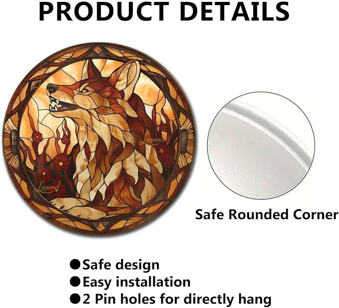 Lygond Metal Sign Tin Sign Circular Stained Glass Coyote Bar Signs for Home Decor for Club 12×12 Inches