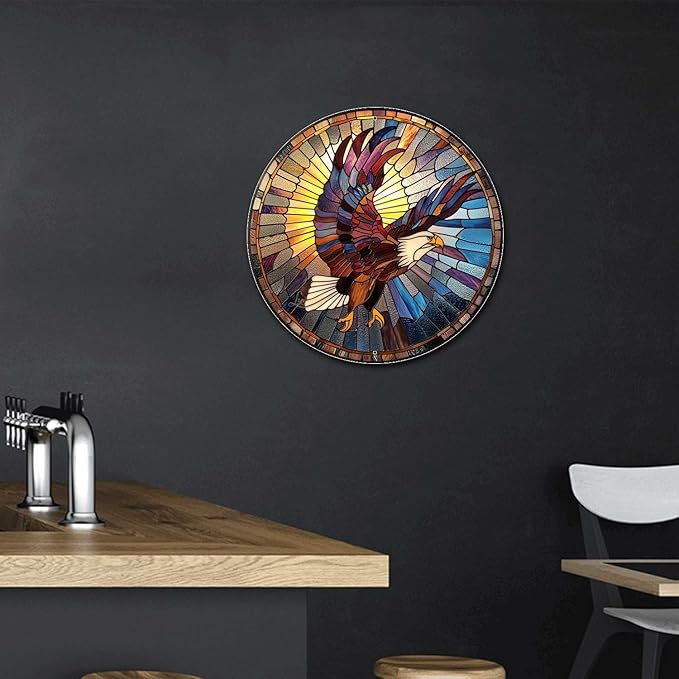 Lygond Metal Sign Tin Sign Circular Stained Glass Eagle Kitty Decor For Pet 8×8 Inches