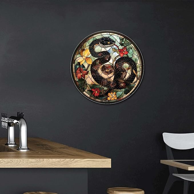 Lygond Metal Tin Sign - Circular Stained Glass Snake Vintage Sign for Garden - 8x8 Inches