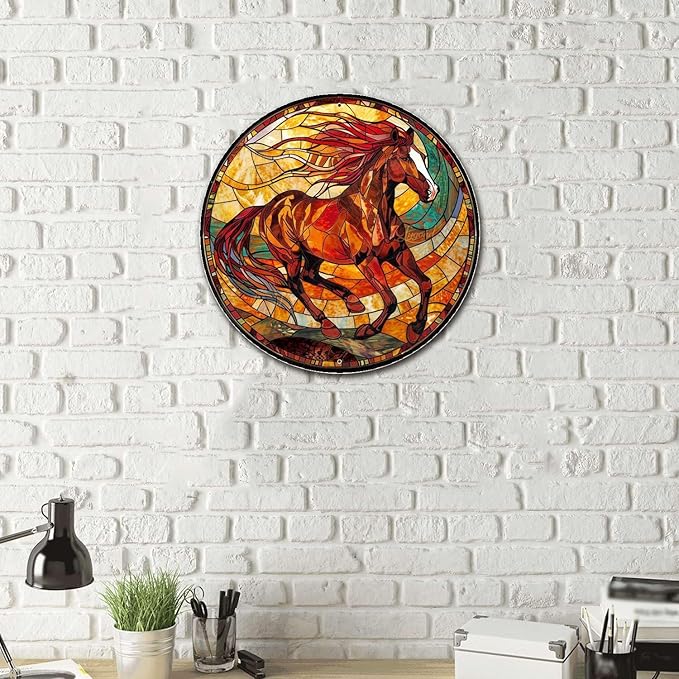 Lygond Metal Sign Tin Sign Circular Stained Glass American Mustang Garden Tin Sign for Gift 8×8 Inches