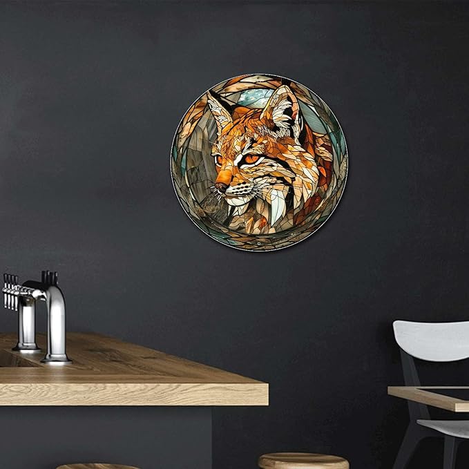 Lygond Metal Sign Tin Sign Circular Stained Glass Bobcat Funny Gardening Gift for Pet 12×12 Inches