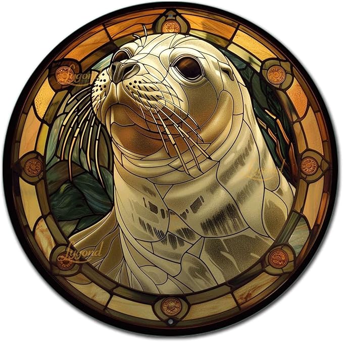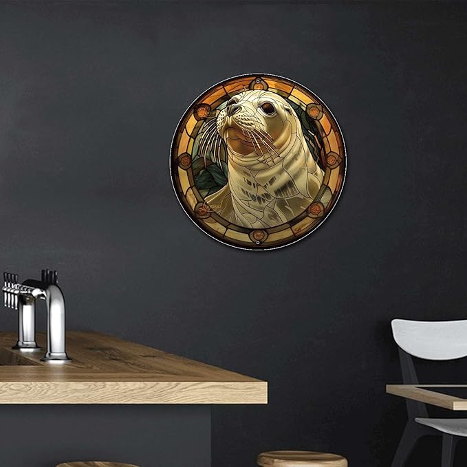 Lygond Metal Sign Tin Sign Circular Stained Glass Harbor Bathroom Signs Decor For Patio 12×12 Inches