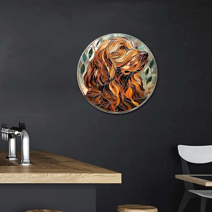 Lygond Metal Sign Tin Sign Circular Stained Glass Dog Funny Gardening Gift for Patio 12×12 Inches