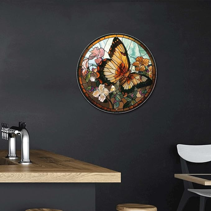Lygond Metal Butterfly Stained Glass Tin Sign for Garage 88 Inches