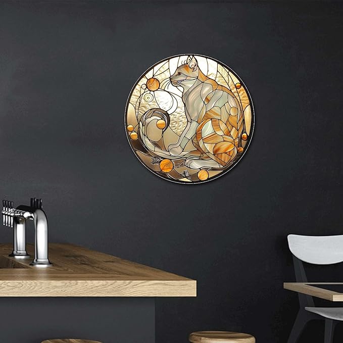 Lygond Metal Tin Sign - Circular Stained Glass Cat Garden Sign for Garage - 1212 Inches