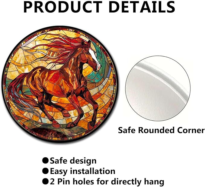 Lygond Metal Sign Tin Sign Circular Stained Glass American Mustang Bar Signs for Home Decor for Garden 12×12 Inches