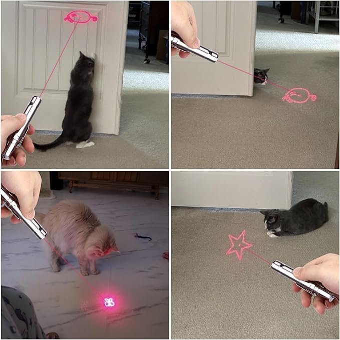 - 【Multiple Function】The cat wand toy is versatile. It can also be used as a pointer for presentations, with a bright beam for clear visibility. You can turn it on with a single push, no need to hold down the button. The lighting mode can glow in the dark, and the purple mode can detect counterfeit money.