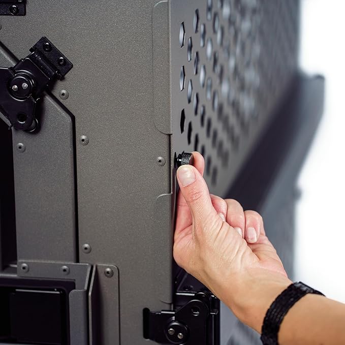 - STACKABLE AND SECURE: Our crates feature durable corners that allow like sizes to be stacked on top of each other, whether in the upright or collapsed position. The overbuilt doors provide increased ventilation, visibility, and airflow, giving you peace of mind with standard butterfly latches, two panels of aircraft-grade aluminum, welded inside and out, and solid aluminum bars. This design ensures your pet's comfort and security at all times.