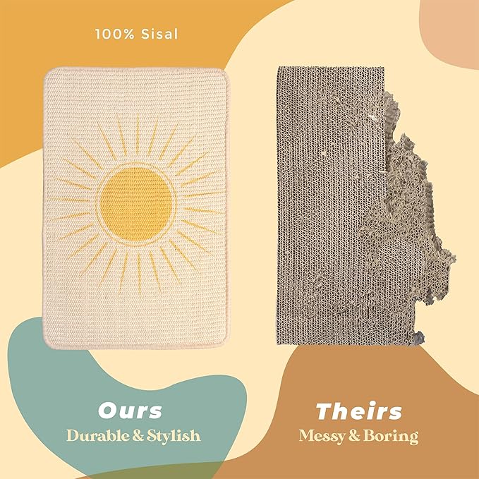 - 🐱 DURABLE - Unlike other Scratchers, Our Scratcher is made with 100% Natural Sisal. Say goodbye to old and shreded scratchers and hello to our Beautiful Scratcher that will elevate your home decor while keeping your cat Entertained.