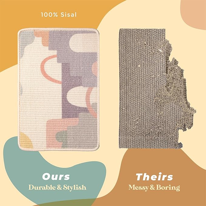 - 🐱 DURABLE - Unlike other Scratchers, Our Scratcher is made with 100% Natural Sisal. Say goodbye to old and shreded scratchers and hello to our Beautiful Scratcher that will elevate your home decor while keeping your cat Entertained.