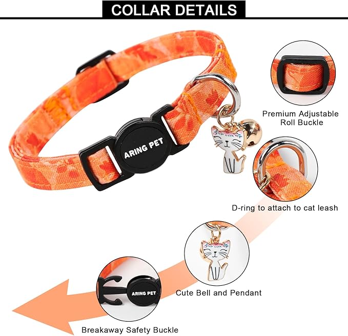 - WELL MATERIAL:❤ARING PET fall halloween cat collar is made of cotton, which is very lightweight and comfortable, and it won't hurt the cat's skin.❤At the same time, cotton cloth is easy to clean. And We recommend hand washing to avoid buckle being scratched in the washing machine.
