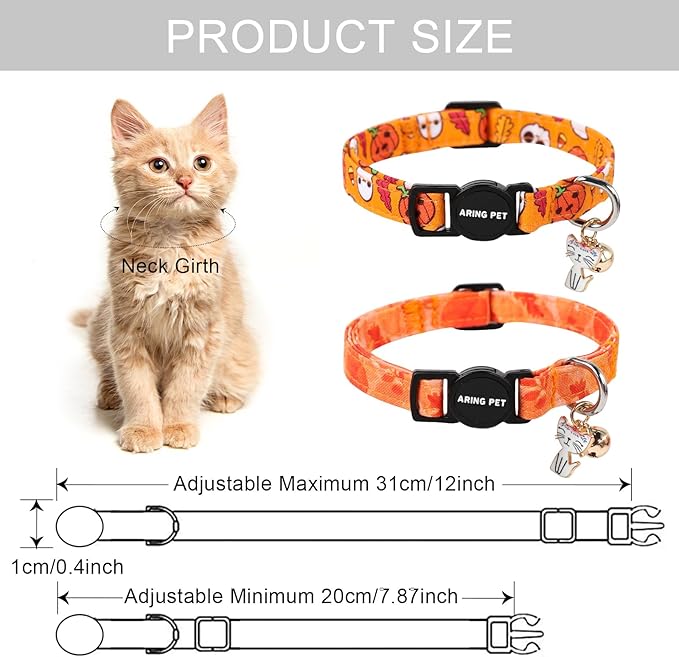 - SAFETY:❤Our fall&halloween cat collar with bells adds extra protection, alerting you to your cat's whereabouts.❤Breakaway buckles design, simply give it a tug, and it swiftly releases, provides more safety for our pets.