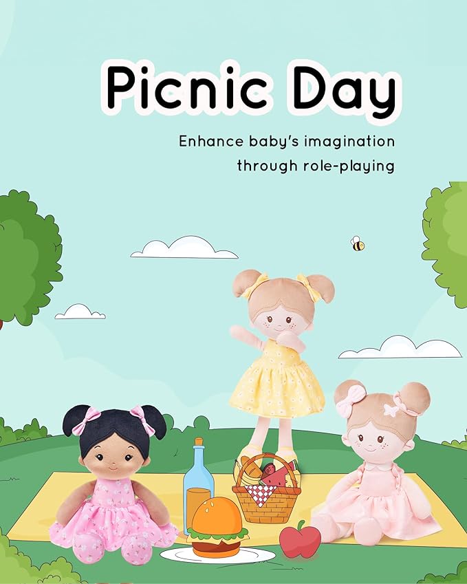 Soft Baby Doll Toys (12''), My First Baby Rag Doll for 1 Year-Old Girl Birthday Gift,Christmas Plush Toys Gift for Toddler Kids Infants-Florabelle-Girl-Pink-Tanned
