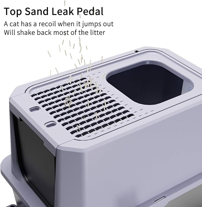 - 【Stainless Steel Basin】 The basin is made of stainless steel which is rust-free, odorless, sturdy and durable for long-term use. Compared with the plastic litter box, the stainless steel material is less likely to make the litter stick to the bottom, and the litter will slide off the smooth surface, which also brings great convenience for cleaning the litter box.