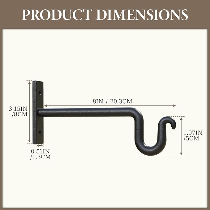 Plant Hook Plant Hanger, 2 Pack 8 Inch Plant Bracket, Metal Plant Wall Hooks for Hanging Flower Basket, Lanterns, Bird Feeder, Wind Chimes Indoor & Outdoor.
