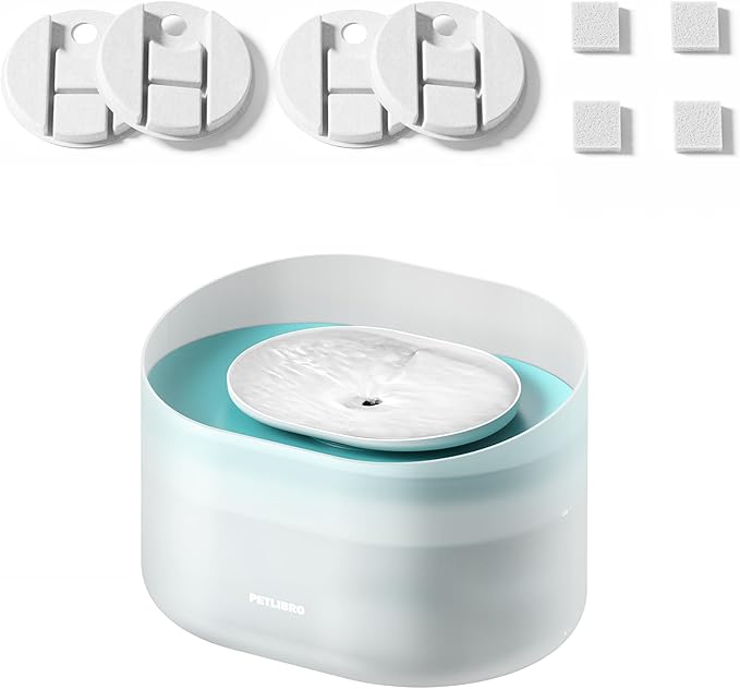 - The Key to Clean Water - PETLIBRO's choice of superior materials guarantees top-tier water cleanliness through the 5-layer filtration system of the pet fountain filter. This system can efficiently filter out impurities such as fur, heavy metals, and unpleasant odors. The five layers comprise non-woven fabric, ion-exchange resins, activated carbon, silver particle ceramic balls, and a sponge.