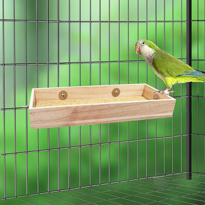 - Excellent Material: The feeding cup with perch is made of 100% natural pine wood, which is green, durable, non-toxic, harmless, impact-resistant, and does not shrink or crack. Nuts and washers are stainless steel for durability.
