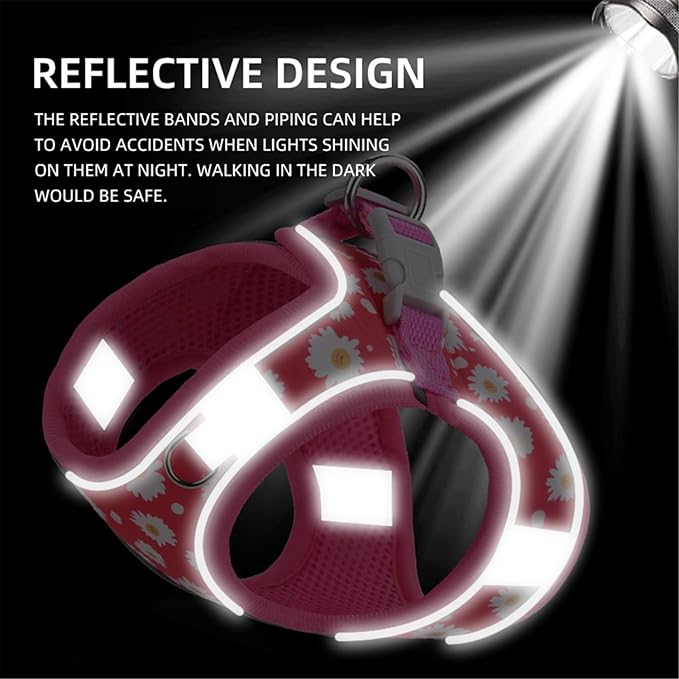 Step in Dog Harness No Pull Flower Adjustable Soft Mesh Padded Reflective Pet Vest Harness and Leash Set for Small Medium Dogs