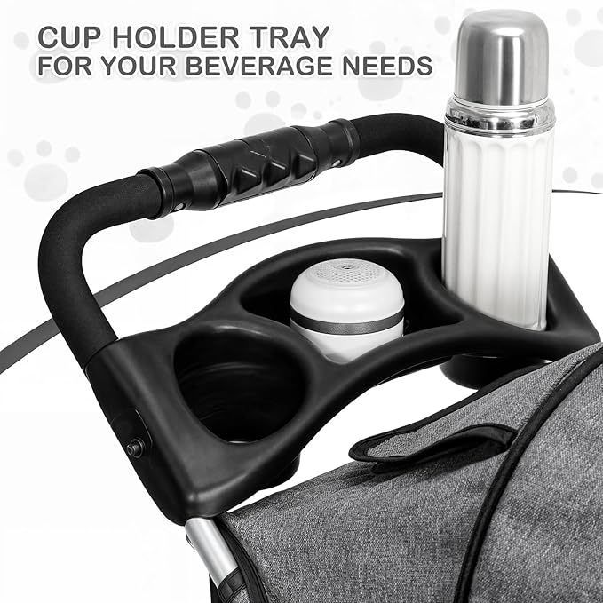 - Humanized Design - With convenient features like swivel front wheels, cup holders, and a hooded peak-top window, this pet stroller makes taking your pet out for exercise and fresh air an easy and enjoyable experience. The roomy design and undercarriage storage basket give you plenty of space to carry your essentials, too.