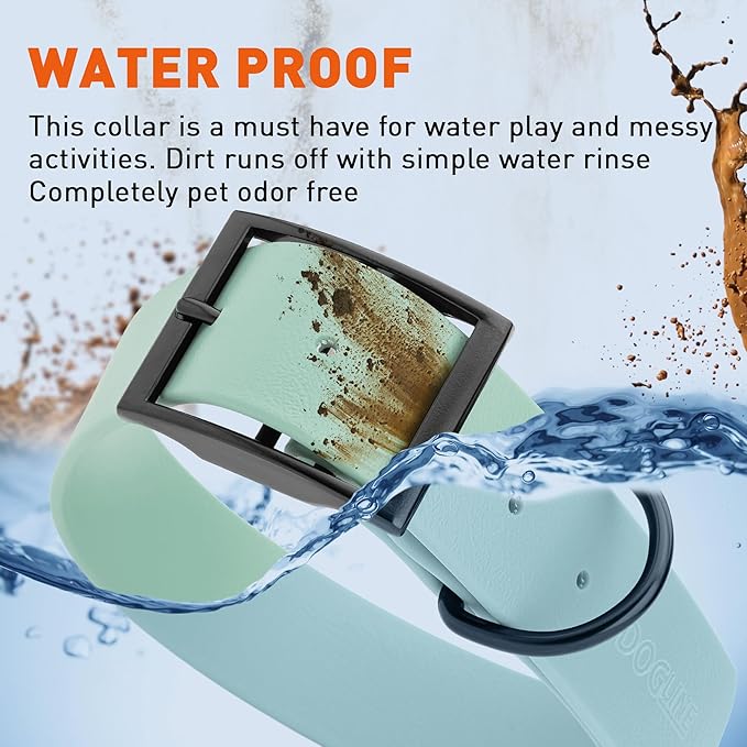 - Free Your Dog to romp in puddles and retrieve from lakes with the Dogline Biothane Waterproof Dog Collar. This water-repellent collar stays dry and odor-free, without shrinking or losing flexibility.