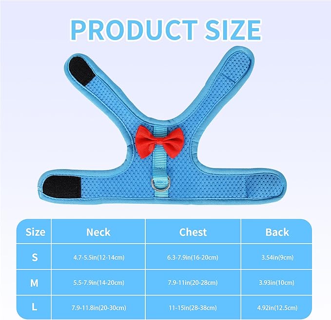 AIITLE Rabbit Harness and Leash Set with Cute Bow, Soft Breathable Mesh Vest Harness for Rabbits Kitten Ferret Puppy Small Pets Walking Supplies Blue L