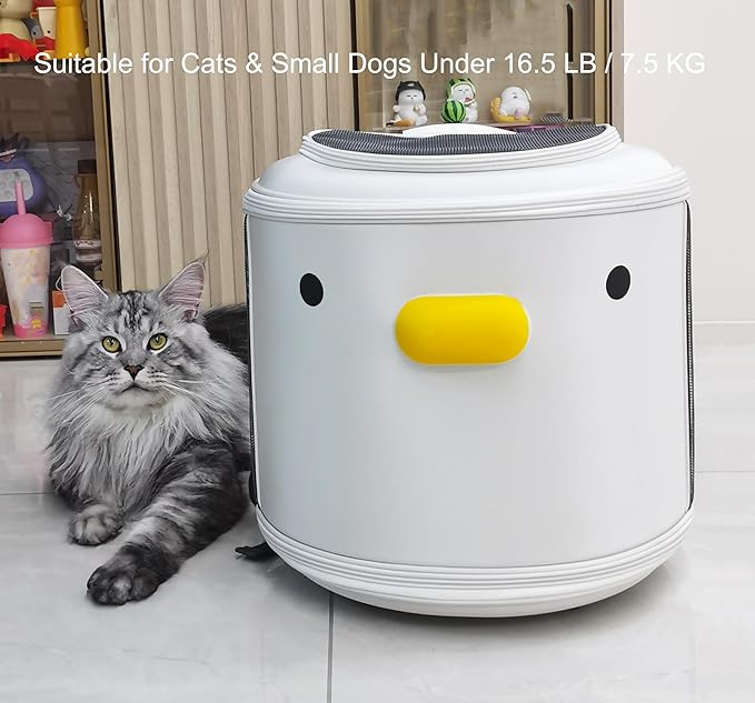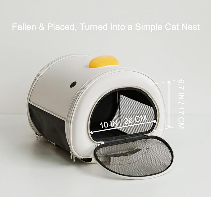 - FRONT ENCLOSED DESIGN: The front of the backpack features a cute duck shape and a closed design, effectively protecting timid pets & reducing pet anxiety. The side and top are equipped with large breathable nets, ensuring sufficient air for cats & small dogs.