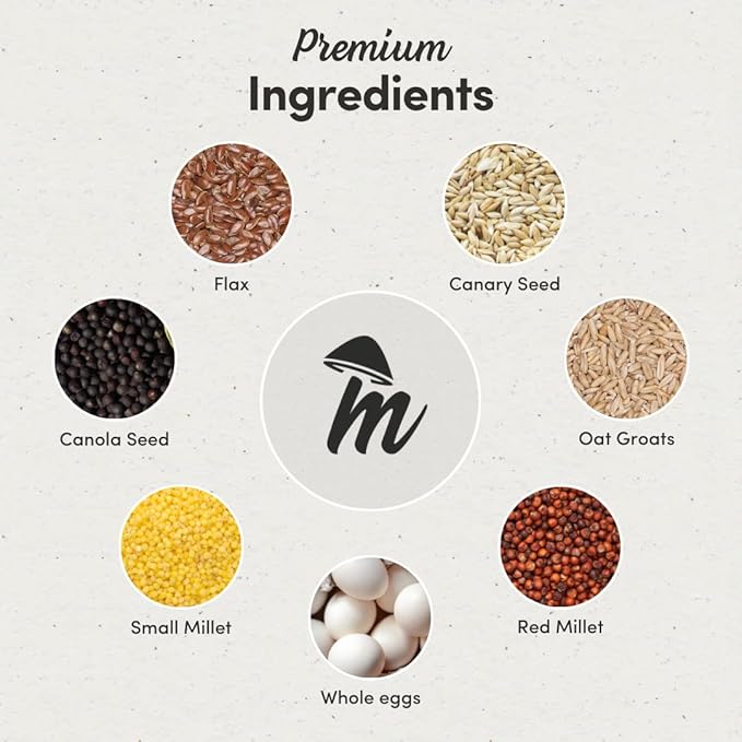 - Energy-Dense Formula for Active Wild Birds: Packed with small millet, canary seed, oat groats and whole eggs, this mix fuels the high-energy needs of active finches and sparrows, keeping them healthy and lively.