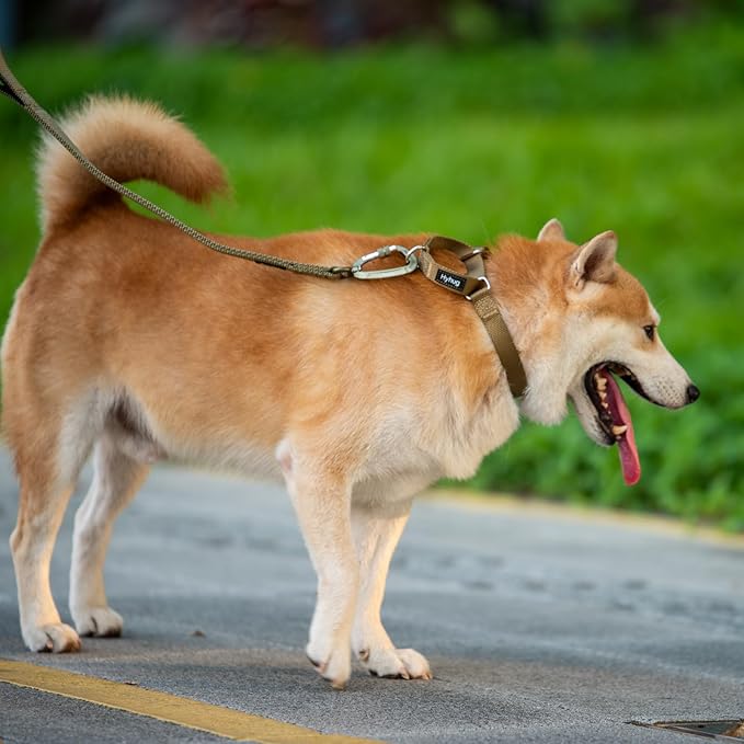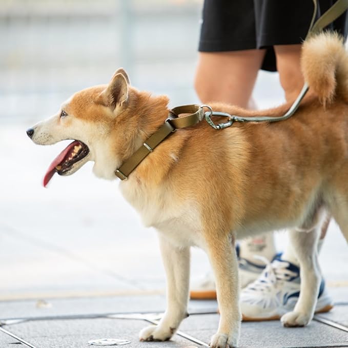 - 1. Martingale style collar without quick release buckle. This heavy duty collar slips easily over the head and gently tightens when pulled to anti escape. The limited closure ensures the collar is not too tight, providing gentle control during walks or training.
