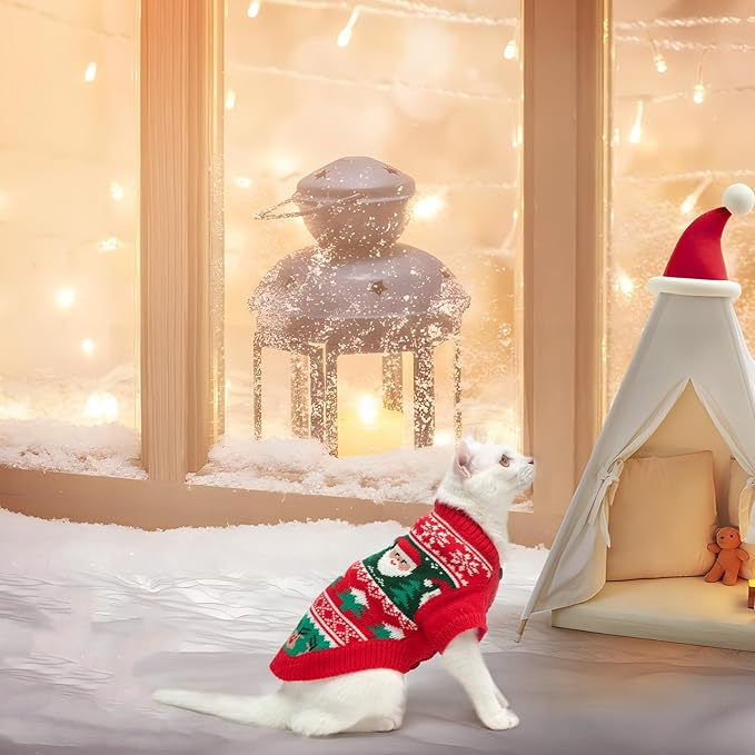 EXPAWLORER Cat Christmas Sweater - Stylish Knitted Christmas Pet Outfit, Soft Clothes for Cats Only, Knitwear Xmas Sweater with Sleeve Warm Apparel, Kitten Clothes for All Cats, Medium