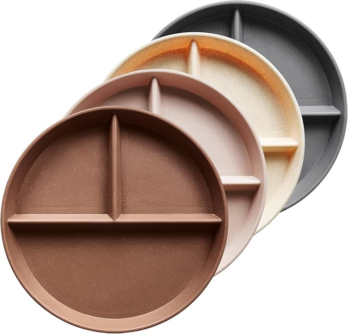greenandlife 9 Inch 4PCS Unbreakable Portion Control Plates, Divided Plates for Kids Adults, Dishwasher & Microwave Safe Compartment Plate, Lightweight Reusable Wheat Straw Plate, BPA Free