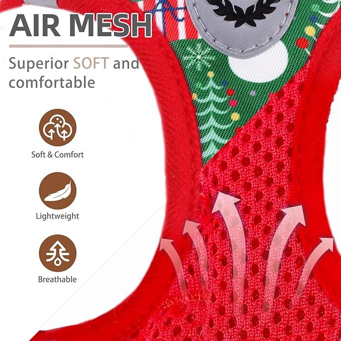 PUPTECK Adjustable Dog Harness Collar and Leash Set Step in No Pull Pet Harness for Small Medium Dogs Puppy and Cats Outdoor Walking Running, Soft Mesh Padded Reflective Vest Harnesses, Christmas, S