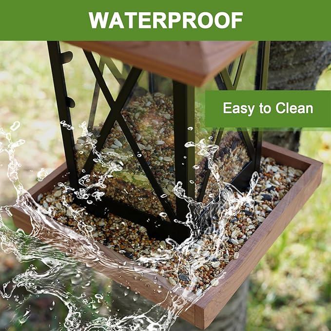 - [Easy to Fill & Clean]: The roof of our bird feeder can be opened so you can easily fill the bird seed, just wash the bird feeder directly under the sink or faucet to keep it clean.